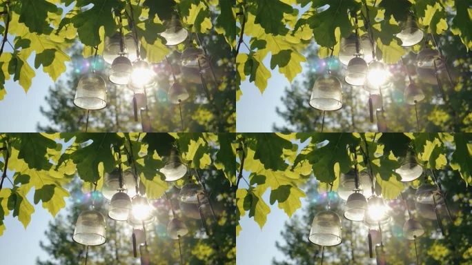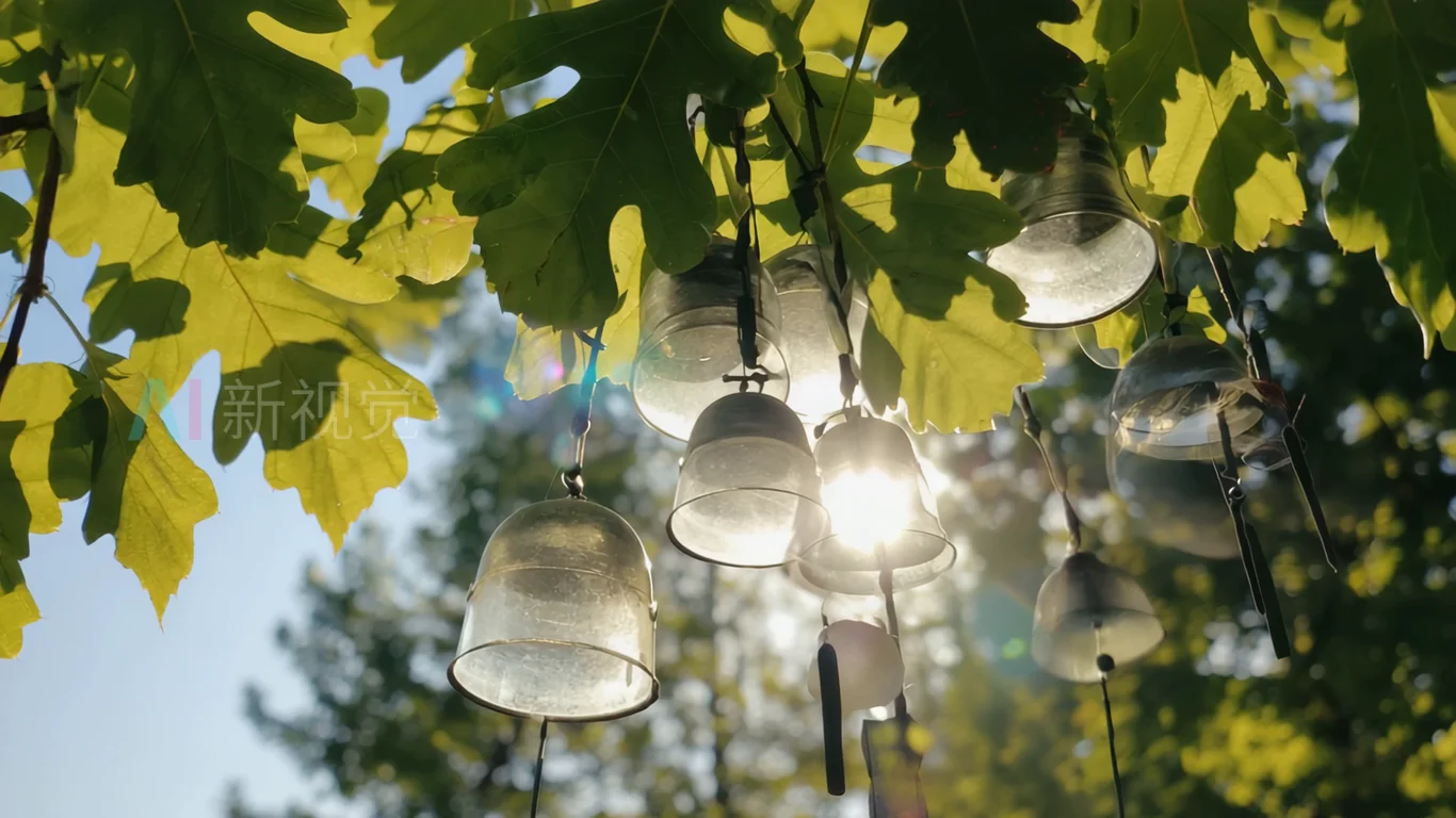首页 / 视频素材 / AI视频素材(横屏) / 阳光下树枝上悬挂的风铃