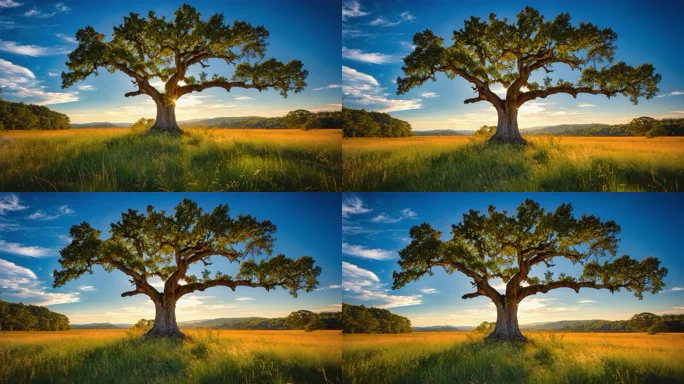 阳光下的一棵树航拍