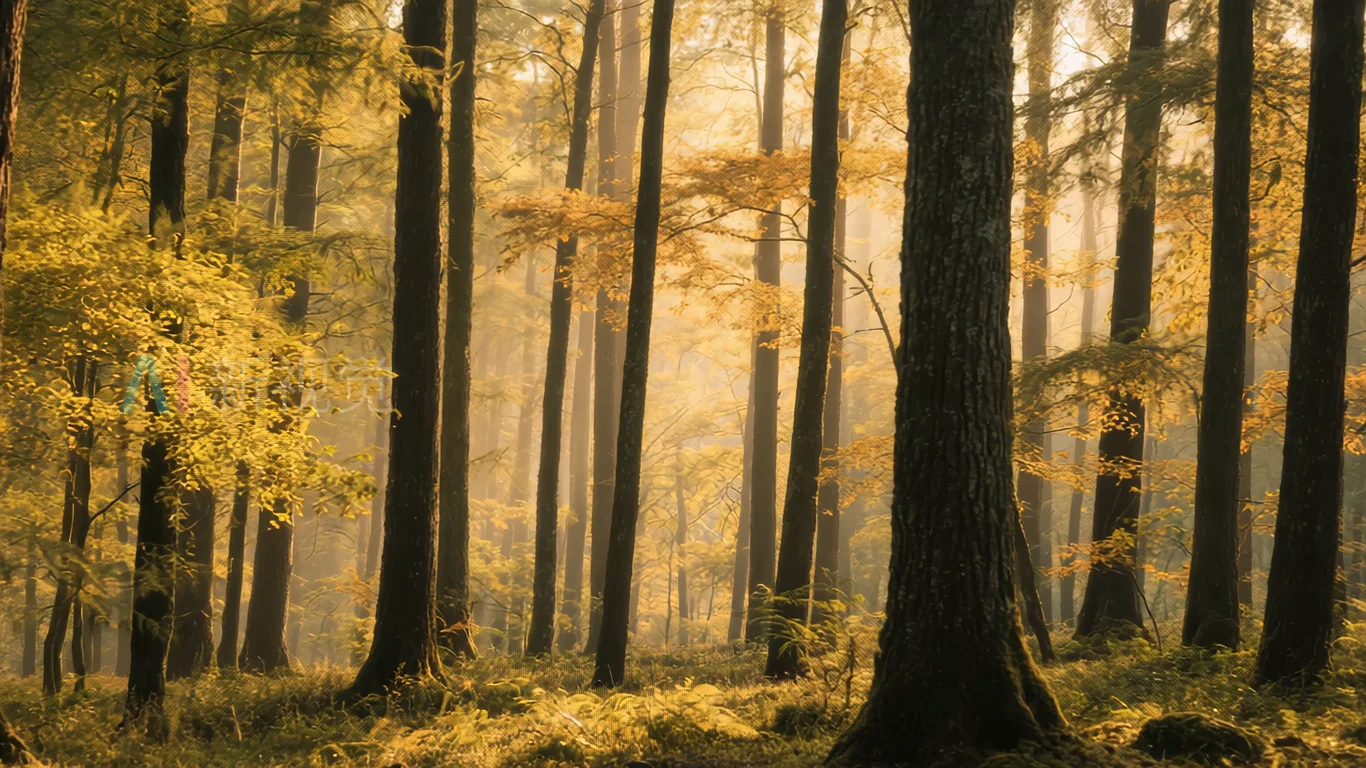 阳光照耀下的森林树林景观