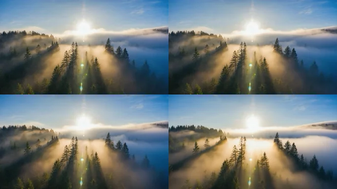 首页 / 视频素材 / AI视频素材(横屏) / 阳光穿透森林云雾景观