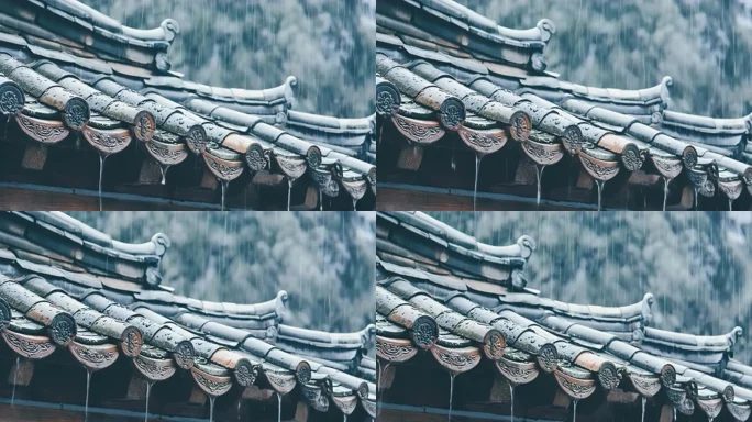 首页 / 视频素材 / AI视频素材(横屏) / 雨中古建筑屋檐特写