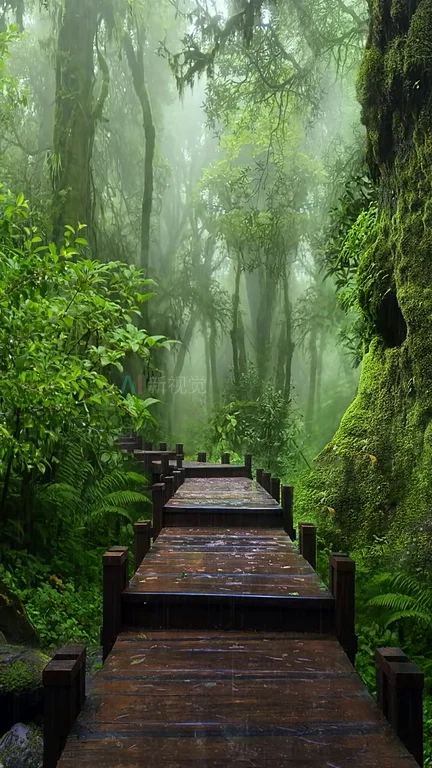 雨景古树林治愈雨雾怀旧疗愈小路 (2)