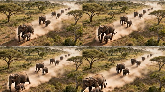 非洲草原大象群行走素材
