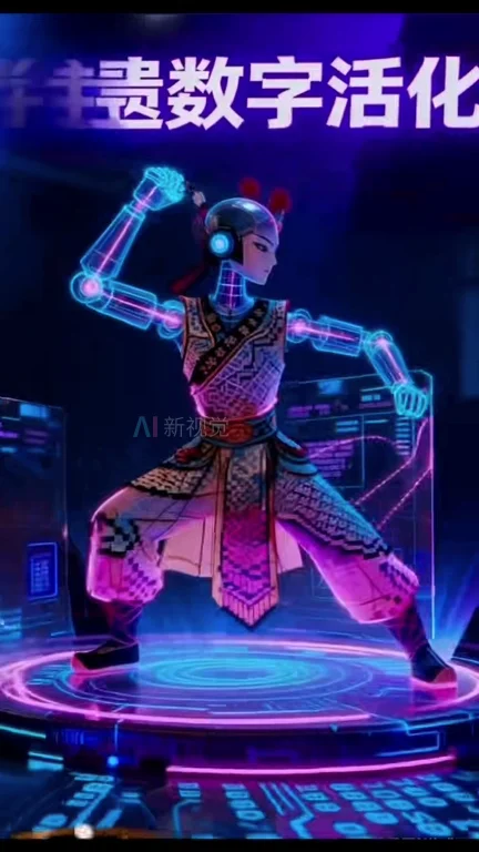 非遗数字活化,光子矩阵关节由AI虚拟化身实时操控,动态元数据流编织皮影服饰霓虹像素纹理,智能合约算法生成传统武打动作路径,赛博戏台基底铺陈流动加密货币光码,8K超清渲染亚克力材质与全息投影的虚实交叠,光线追踪捕捉量子态皮影运动残光。