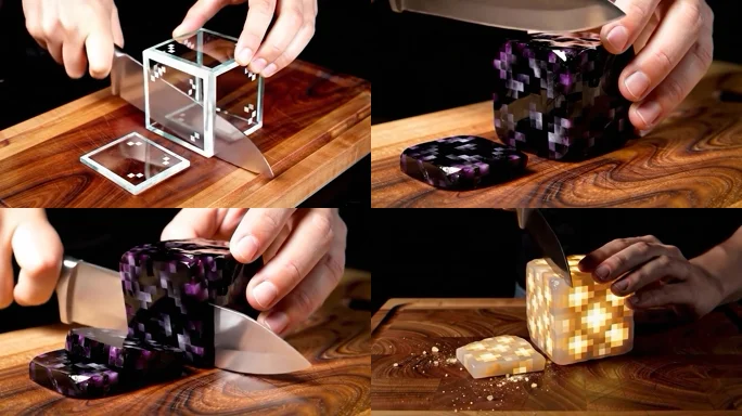 AI切割我的世界玻璃黑曜石萤石干草垛原石安山岩草方块白桦木游戏视频 1016*576,MP4,AIGC视频库,AI视频素材下载。