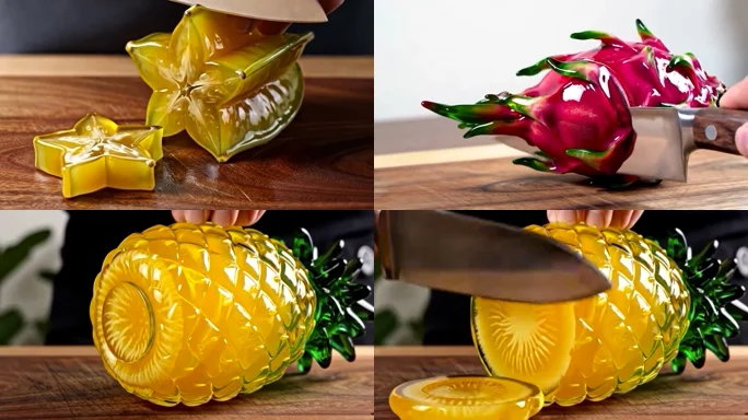 AI切割水果火龙果菠萝解压视频 1082*576,MP4,AIGC视频库,视频素材下载
