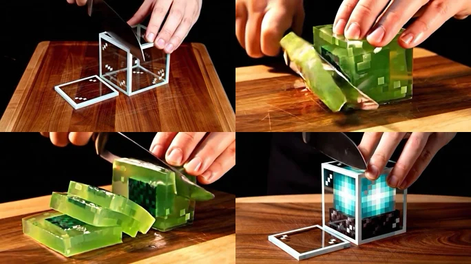 AI切割视频木头红砖粘液块信标书架萤石闪长岩我的世界游戏视频 1016*576,MP4,AIGC视频素材库,AI视频下载!